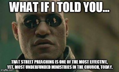 Thank you Shane, I appreciate your encouragement and your prayers. Street preaching is so important, I believe, as many may never step inside a church to hear the gospel.