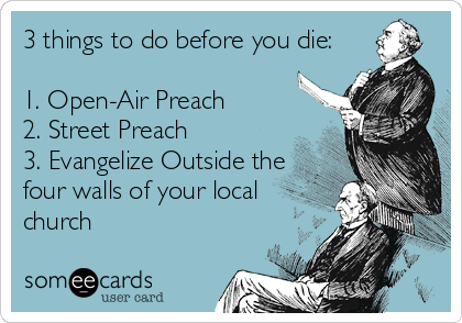 At least you’re doing something positive and dear to! There are so many Christians who have not built up enough courage to step out of their comfort zones to exercise their faith to go out and do their assignment, because of fear! This is mission work; you are in the fields, and you are obedient to the master’s voice to dear go evangelize! YOU ARE A WATCHMAN! Who is concern about people’s soul! Well done thou good and faithful servant! This is awesome and encourages me to get going! I to have an assignment to do! And if we don’t there’s always someone out there in the kingdom who is willing to work for GOD! His payroll is loaded with supernatural gifts beyond our imagination. May our heavenly Father grant you! And your Ministry!! That he placed on the inside of you! The support and advancement with multiple BLESSINGS! In growth development and Expansion! Restoration! Elevation! Acceleration! Vindication! Increase in boldness not by power nor might but by his Holy Spirit! In Jesus Mighty Matchless name