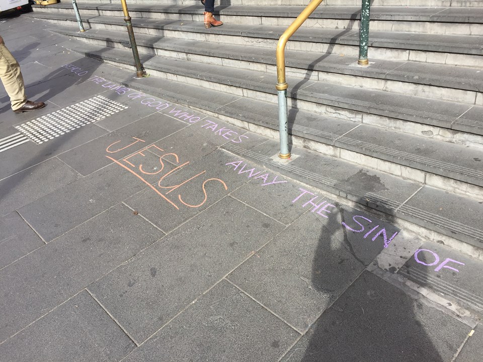 Even when the two lesbians very deliberately came and stood right in front of me passionately kissing as I preached the gospel. Even when the father leant over on his small son’s back in mocking laughter at me. Even as people called out “My god is football!”